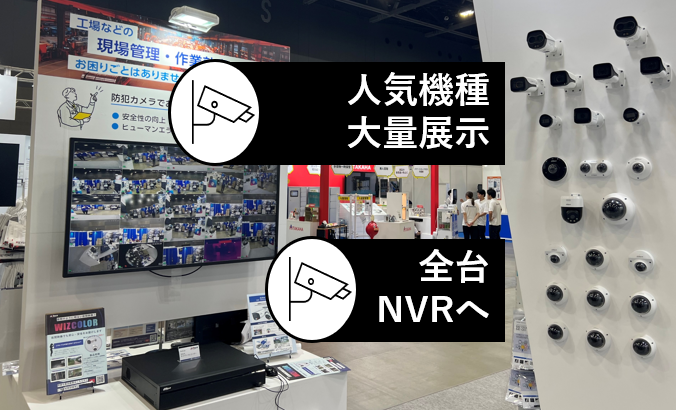 | 出展内容 | 当社ブースの一角を防犯カメラ臨時ショールームとして活用。合計数十台の実機をNVRに接続。 話題のAI機能付きカメラや売れ筋機種をご体験いただきながら、その場で商談が可能 |